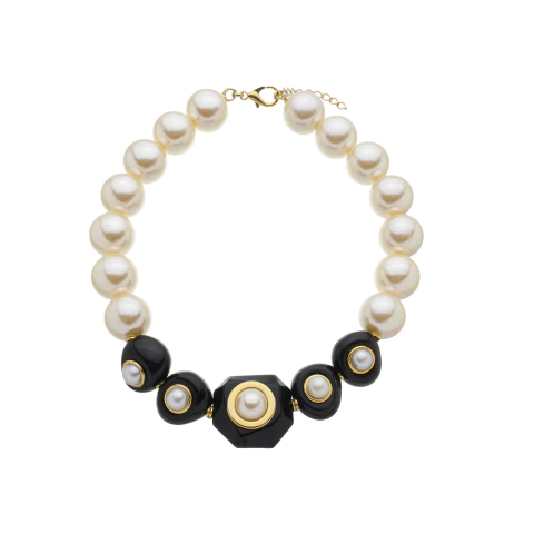 Lindo colar de resina e pérolas com tachinhas douradas.